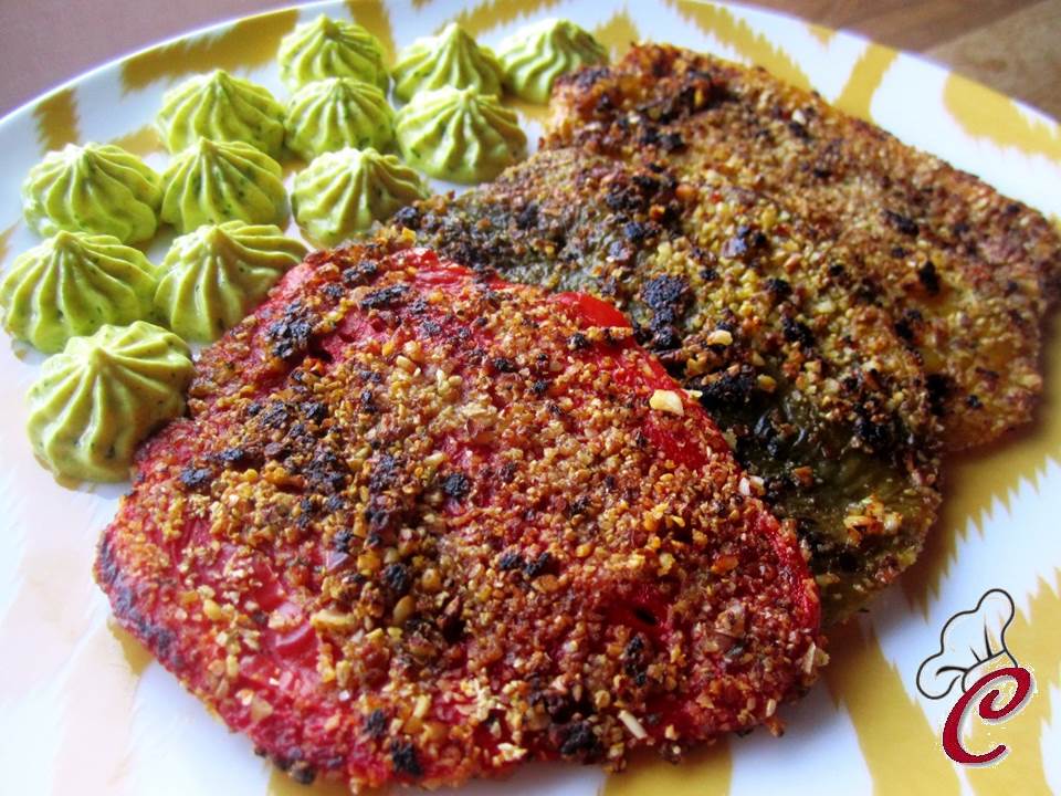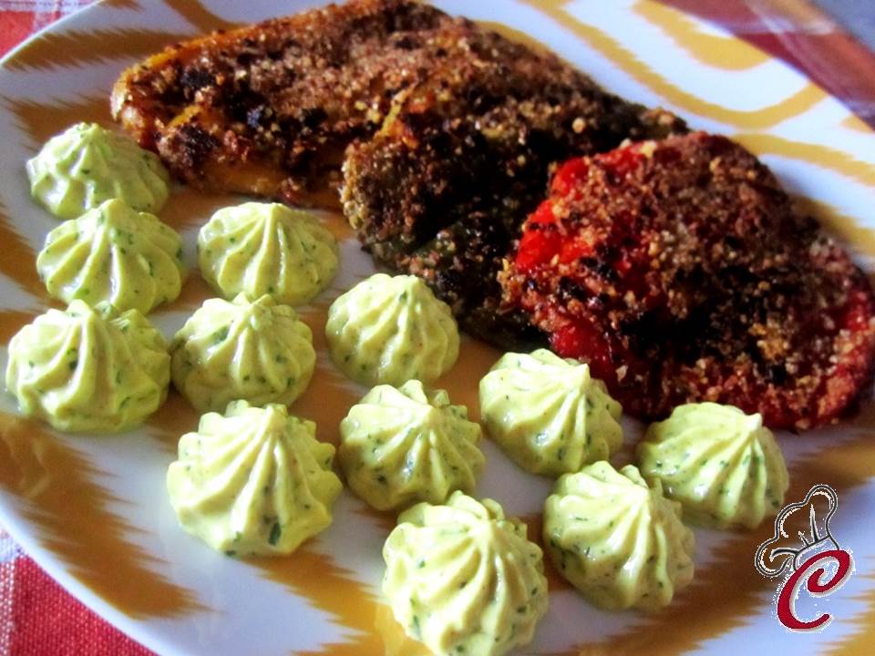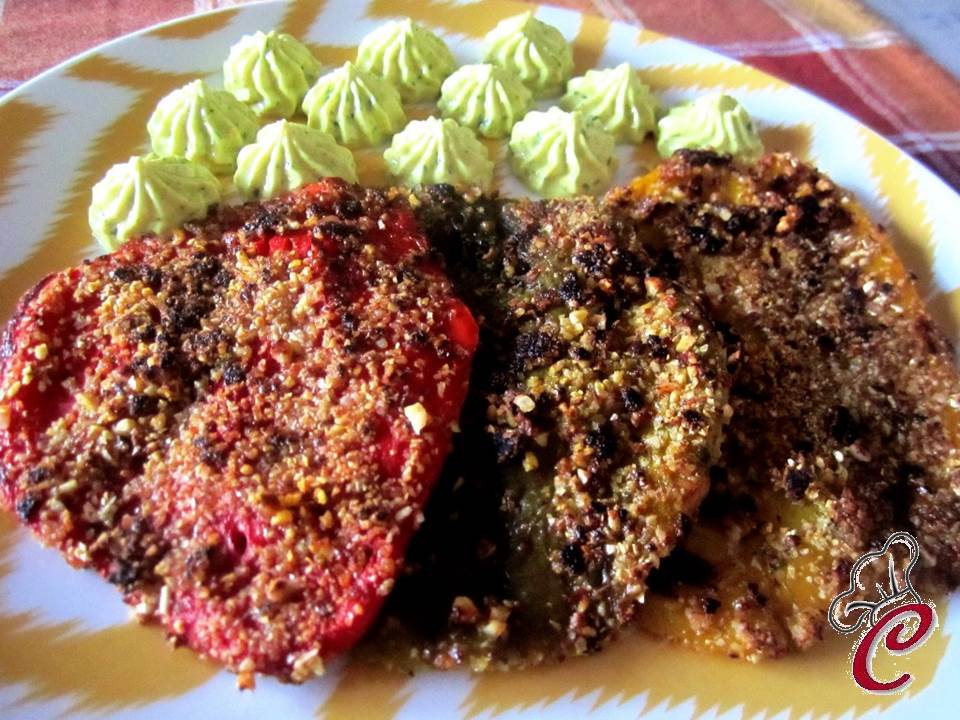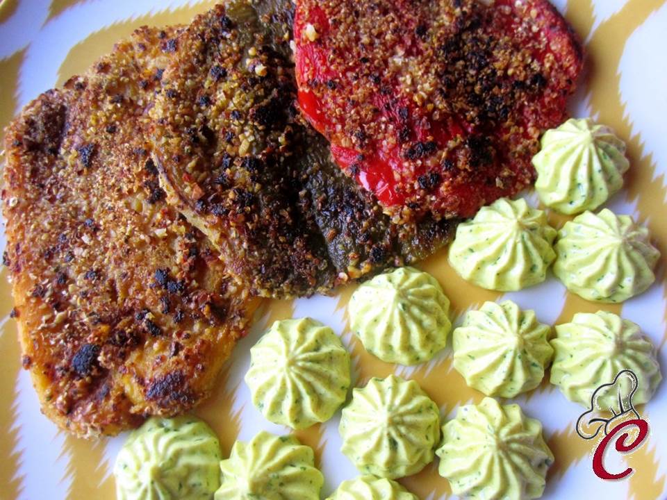 Cotolette di peperoni in panatura di nocciole con crema di caprino alla curcuma: ricchezze e fantasie d’estate